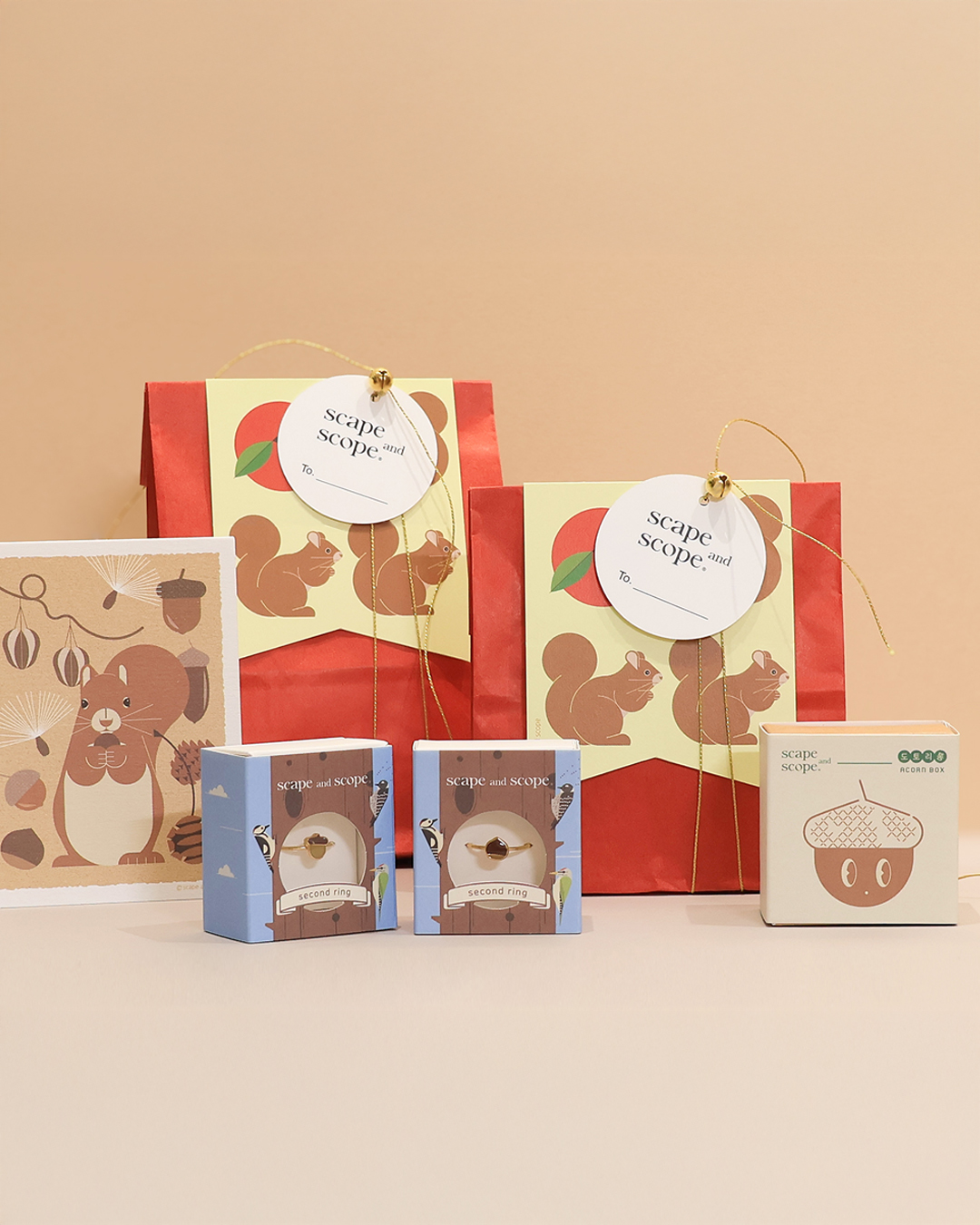 • 구성 : 청설모 미니카드 + 작은 도토리통 + 알밤, 도토리 반지