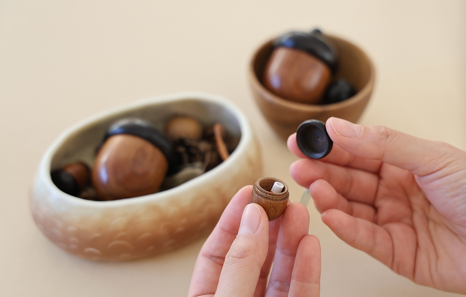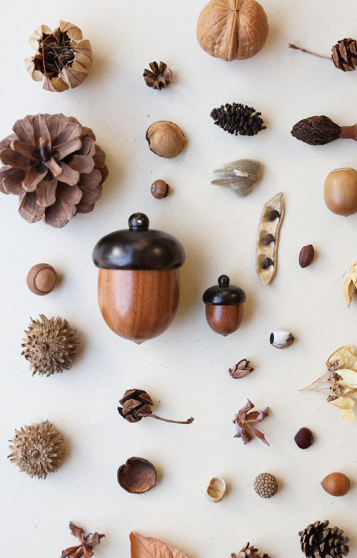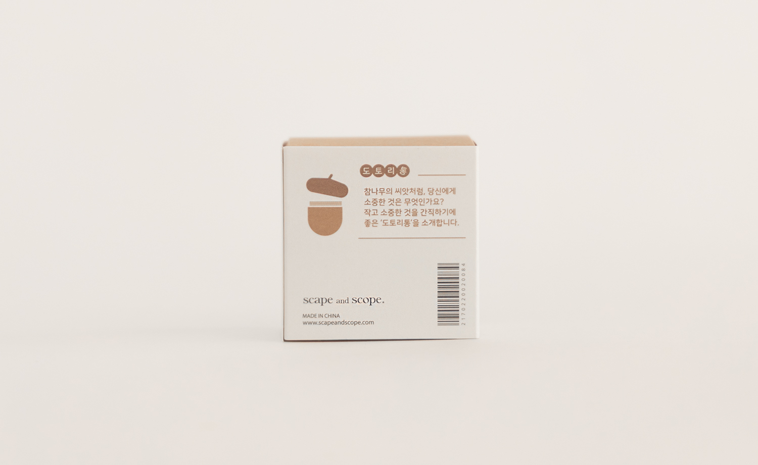 사실 이 제품은 아주 오래 전부터 품은 개인적인 마음에서 출발했습니다. 도토리나 호두, 땅콩과 같은 견과류의 껍데기에 잔뜩 매료된 때가 있었습니다. 소중한 씨앗을 담기 위해 나무들이 만든 저마다의 독특하고 실용적인 작은 상자. 세상에 이것보다 멋진 통은 없을 것 같았습니다. 호두, 도토리, 은행을 반 가르고 그 껍데기를 다시 끈으로 묶어 보물상자로 쓰기도 했지요. 도토리통은 이 귀여운 숲속의 보석함들을 나도 모으고, 쓰고 싶다는 다람쥐와 같은 마음에서 시작했습니다➿🐹