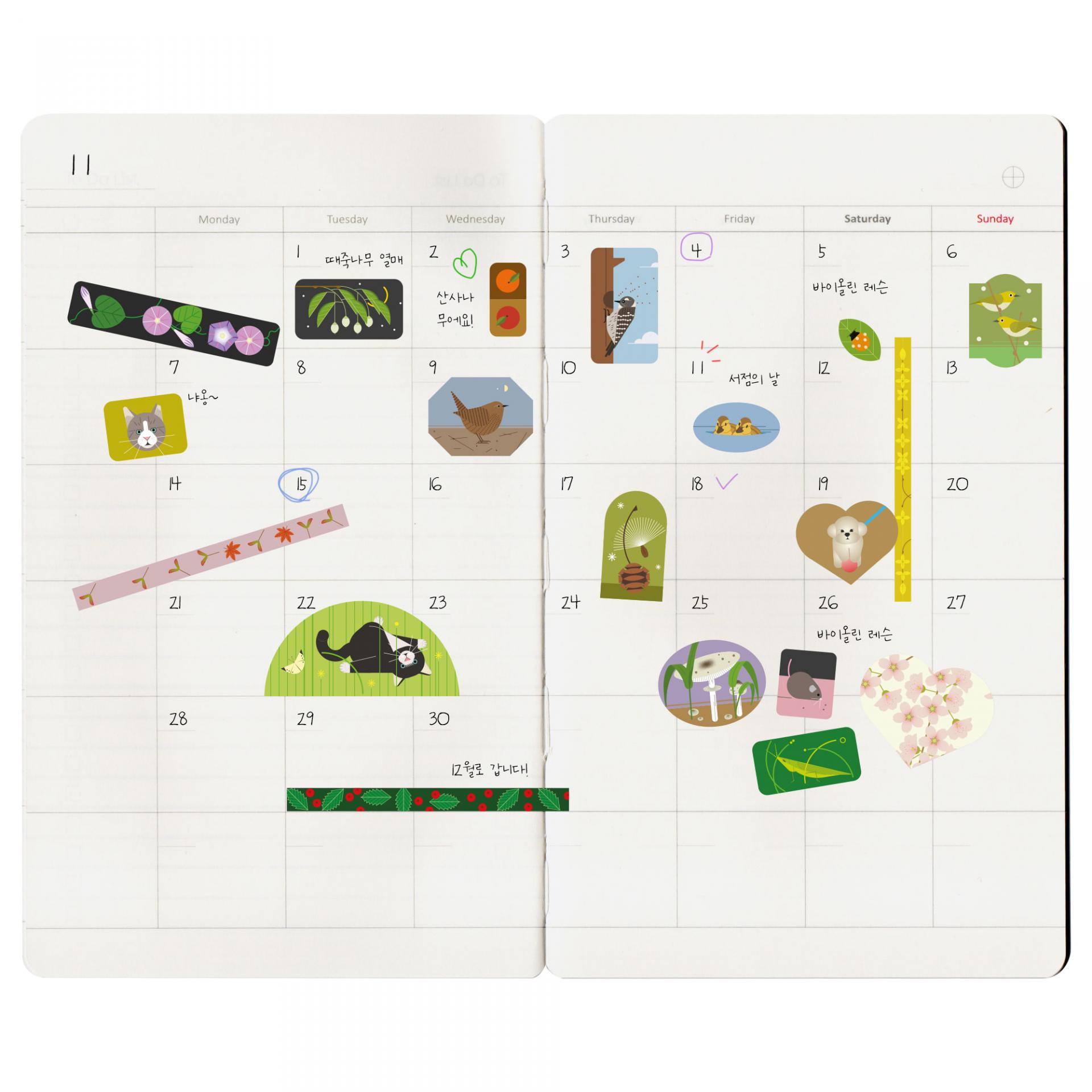 공원에 서식하는 동물, 식물, 버섯, 새, 곤충들을 모으고 분류해 그렸습니다. 이 제품은 그 중 일부를 모아 스티커로 만든 것입니다.
