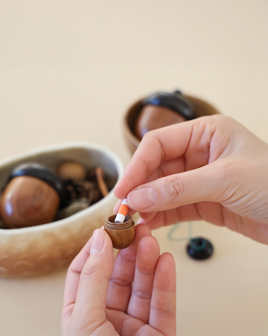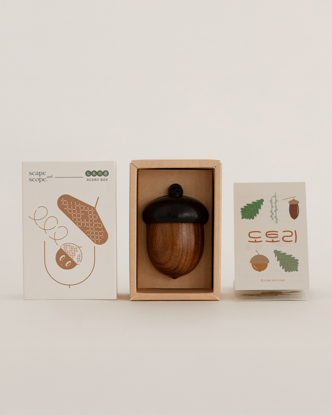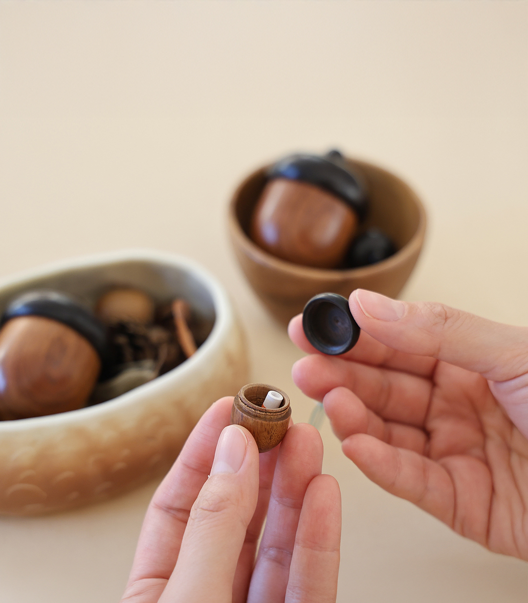 사실 이 제품은 아주 오래 전부터 품은 개인적인 마음에서 출발했습니다. 도토리나 호두, 땅콩과 같은 견과류의 껍데기에 잔뜩 매료된 때가 있었습니다. 소중한 씨앗을 담기 위해 나무들이 만든 저마다의 독특하고 실용적인 작은 상자. 세상에 이것보다 멋진 통은 없을 것 같았습니다. 호두, 도토리, 은행을 반 가르고 그 껍데기를 다시 끈으로 묶어 보물상자로 쓰기도 했지요. 도토리통은 이 귀여운 숲속의 보석함들을 나도 모으고, 쓰고 싶다는 다람쥐와 같은 마음에서 시작했습니다➿🐹