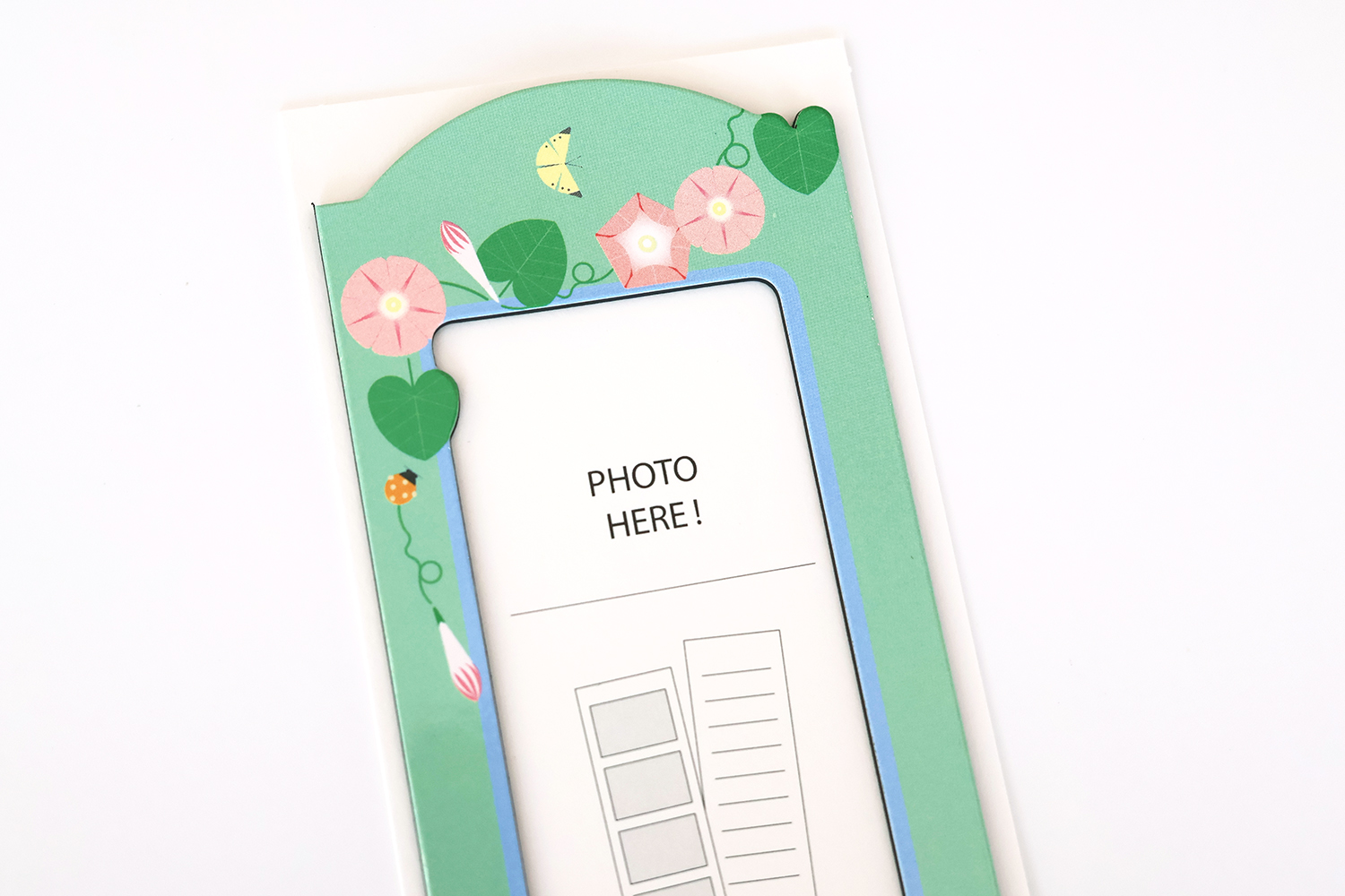 네컷 사진을 꽂아두기에 적당한 크기이고, 프레임에 맞는 메모지가 함께 들어있습니다.