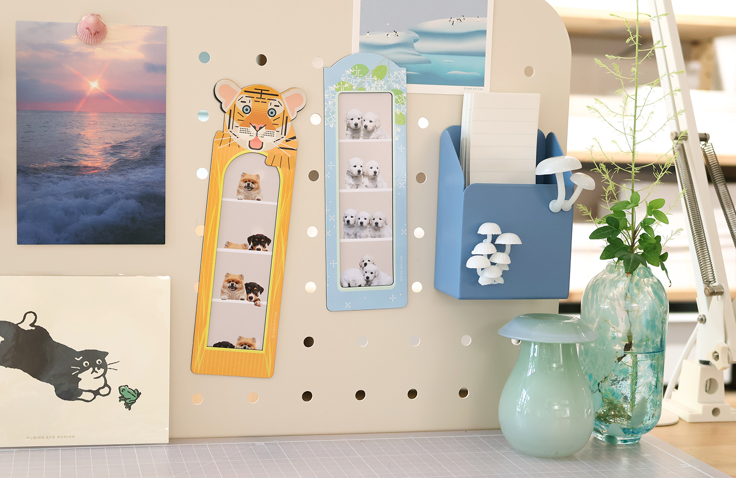 프레임 안에 네컷 사진이나 메모지를 넣어 원하는 곳에 붙여보세요!