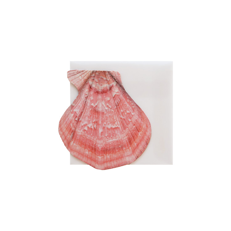 ‘분홍무늬가리비’보다 약간 짙은색을 띄는 ‘진분홍가리비’입니다. 대부분의 가리비 껍데기들이 동그란 형태인데 오각형 형태를 띈 가리비 종이 일부 있습니다. 그 다양함을 보여드리기위해 카드에 하나 넣었습니다~💌 방사형으로 뻗은 세 개의 굵은 선과 불규칙적인듯 규칙적인 흰색 패턴이 독특합니다 : )