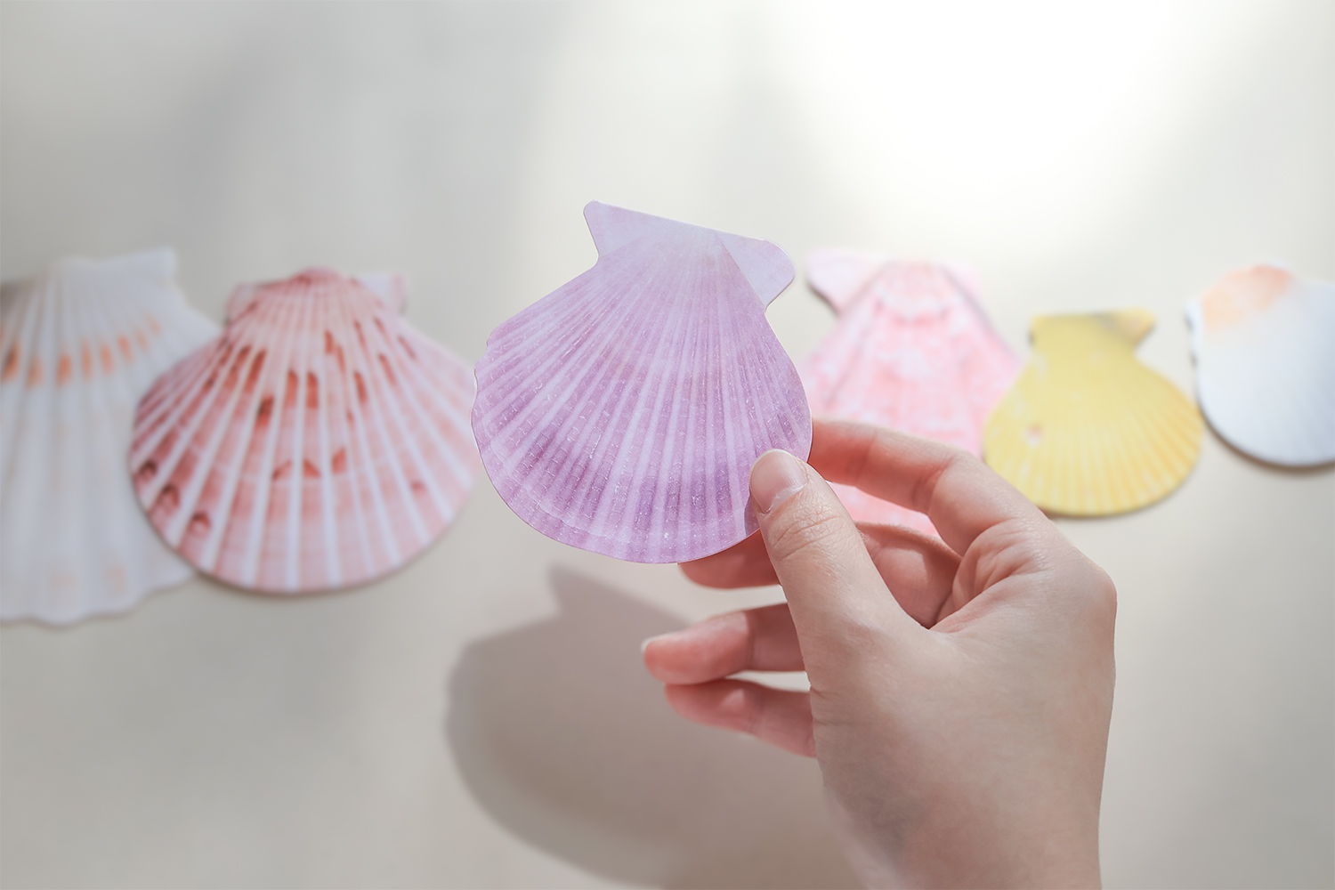 이번 시즌 우리는 ‘가리비의 아름다움‘을 소개합니다. 5센티미터부터 10센티미터까지. 크고, 작고, 알록달록하고, 저마다의 패턴으로 빛나는 가리비 껍데기를 카드로 만들었습니다. 가리비를 열어 소중한 메시지를 담아보세요.