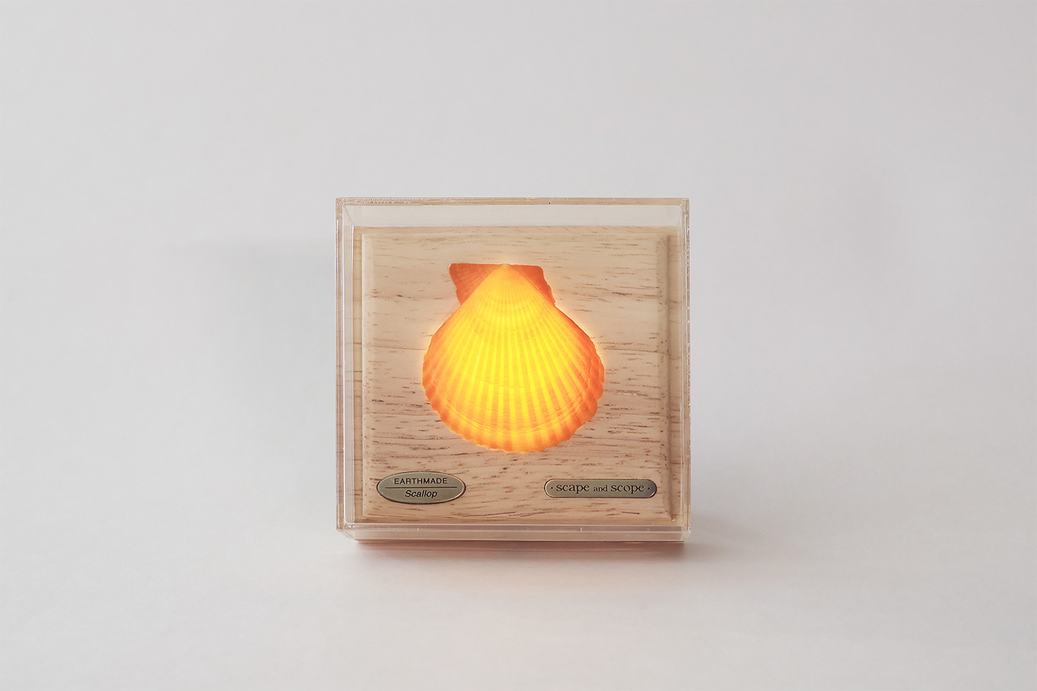 램프에 불이 들어오면 가리비 껍데기의 섬세한 모양을 따라 빛이 흐릅니다.