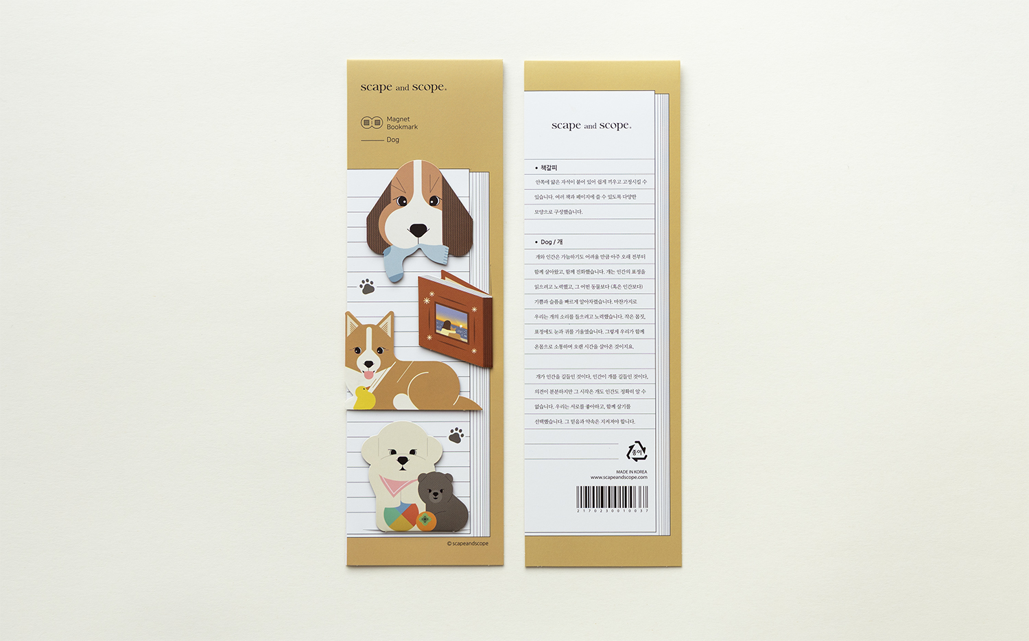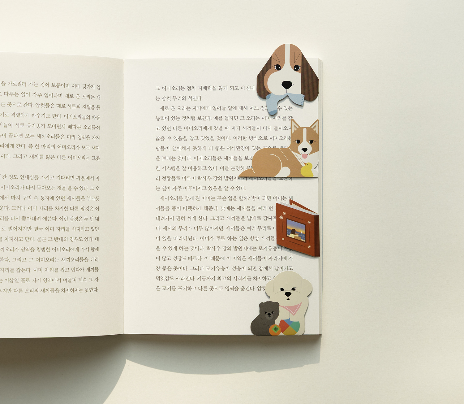 독서의 시작과 끝을 함께하는 물건. 즐겁고 가볍게 쓰기 좋은 책갈피를 소개합니다. 우리 가까이의 동물과 식물을 담아 안쪽 면에는 얇은 자석을 붙였습니다. 적당히 얇은 두께와 자력으로 책을 손상하지 않도록 했습니다.