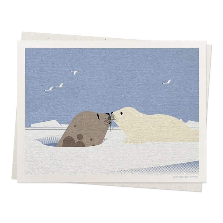 몸에 하프 무늬가 있어서 ‘하프물범’입니다. 어미와 새끼는 코를 맞대고 냄새로 서로를 알아봅니다. 수명이 35년 정도 되는데, 그 중 고작 15일을 엄마와 함께 합니다.