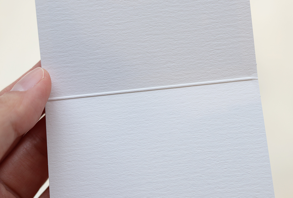 카드의 바탕이 되는 종이를 고를 때 우리가 가장 중요하게 생각한 것은 '촉감'입니다. 조금 거칠지만 자연스러운 질감이 살아있는 비도공지를 사용했습니다.