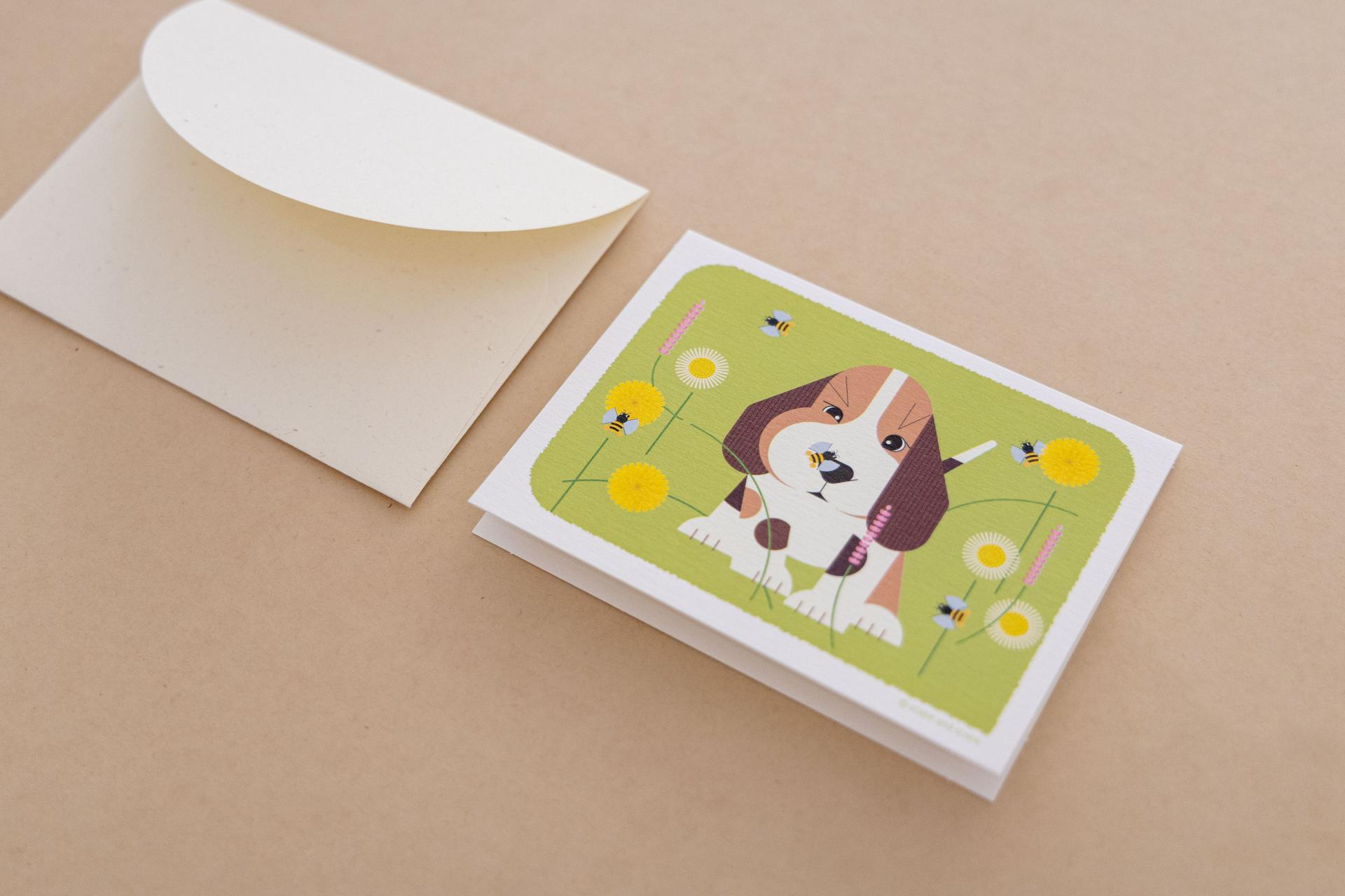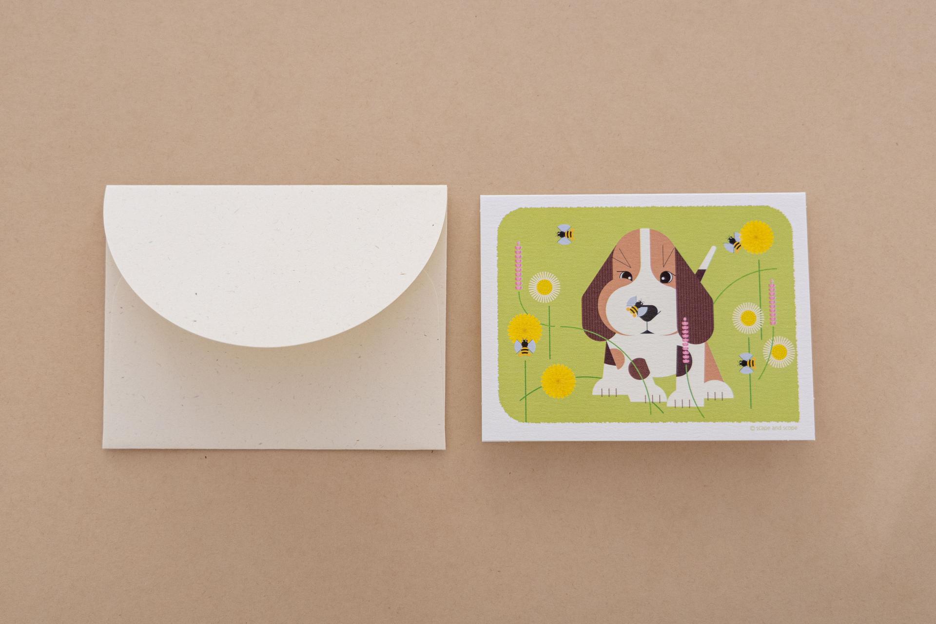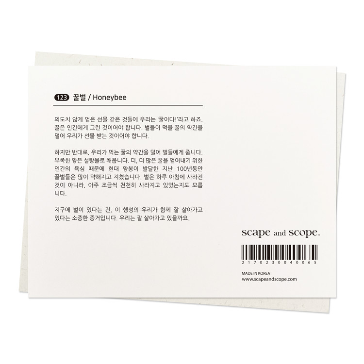 카드의 바탕이 되는 종이를 고를 때 우리가 가장 중요하게 생각한 것은 '촉감'입니다. 조금 거칠지만 자연스러운 질감이 살아있는 비도공지를 사용했습니다.