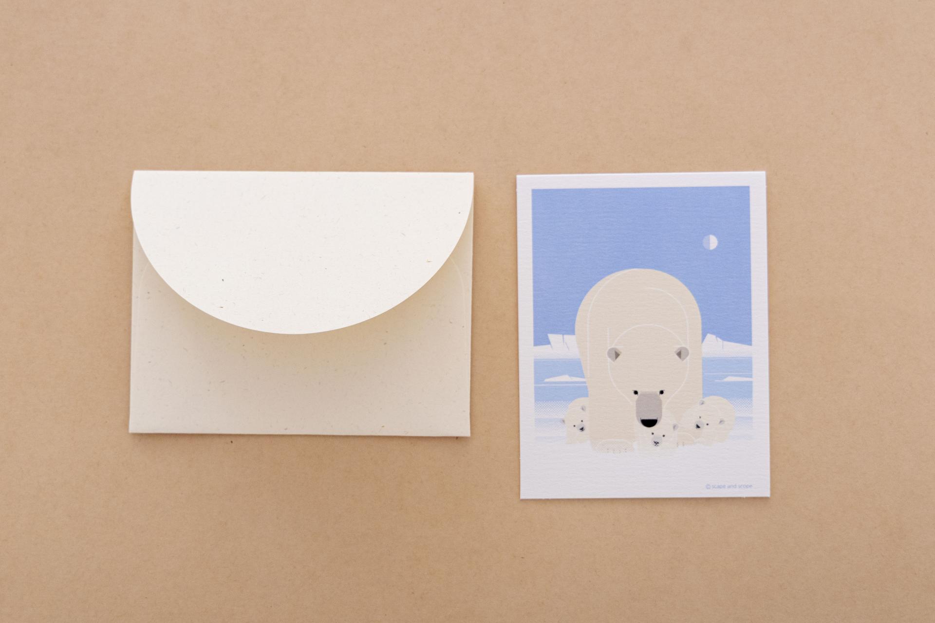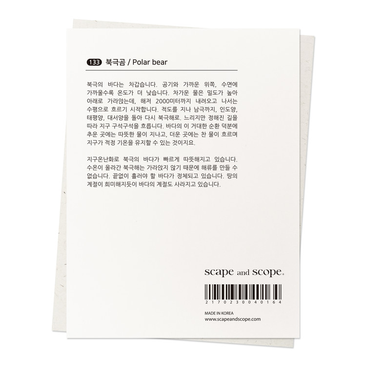 카드의 바탕이 되는 종이를 고를 때 우리가 가장 중요하게 생각한 것은 '촉감'입니다. 조금 거칠지만 자연스러운 질감이 살아있는 비도공지를 사용했습니다.