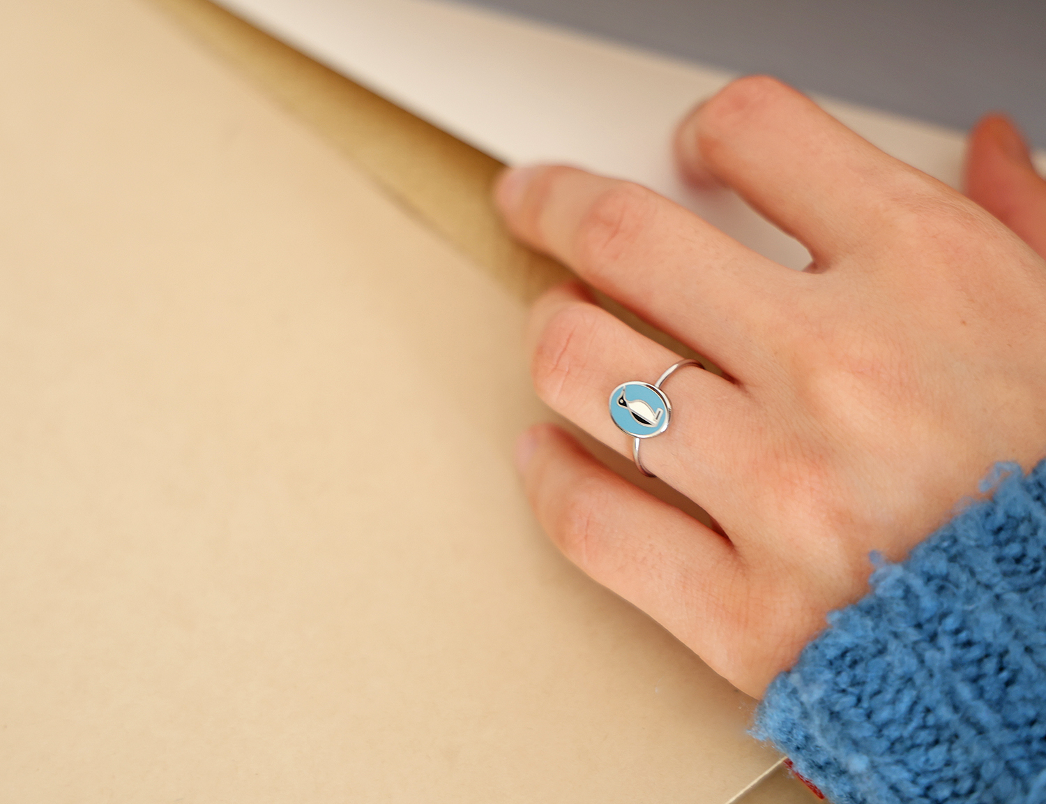 크기가 너무 작아 제작 공정 상의 어려움이 있었습니다. 수정을 셀 수 없이 반복했지만 실물보다 못 하게 그린 것 같아 바다오리에게는 미안합니다. 바다오리 반지를 구매하신 분들은 바다오리 사진도 한번 찾아보시고, ☁☁🐬☁ 내 손가락 위에 얼마나 아름다운 새가 앉아있는지 알고 끼시면 더 즐거울 것 같아요!