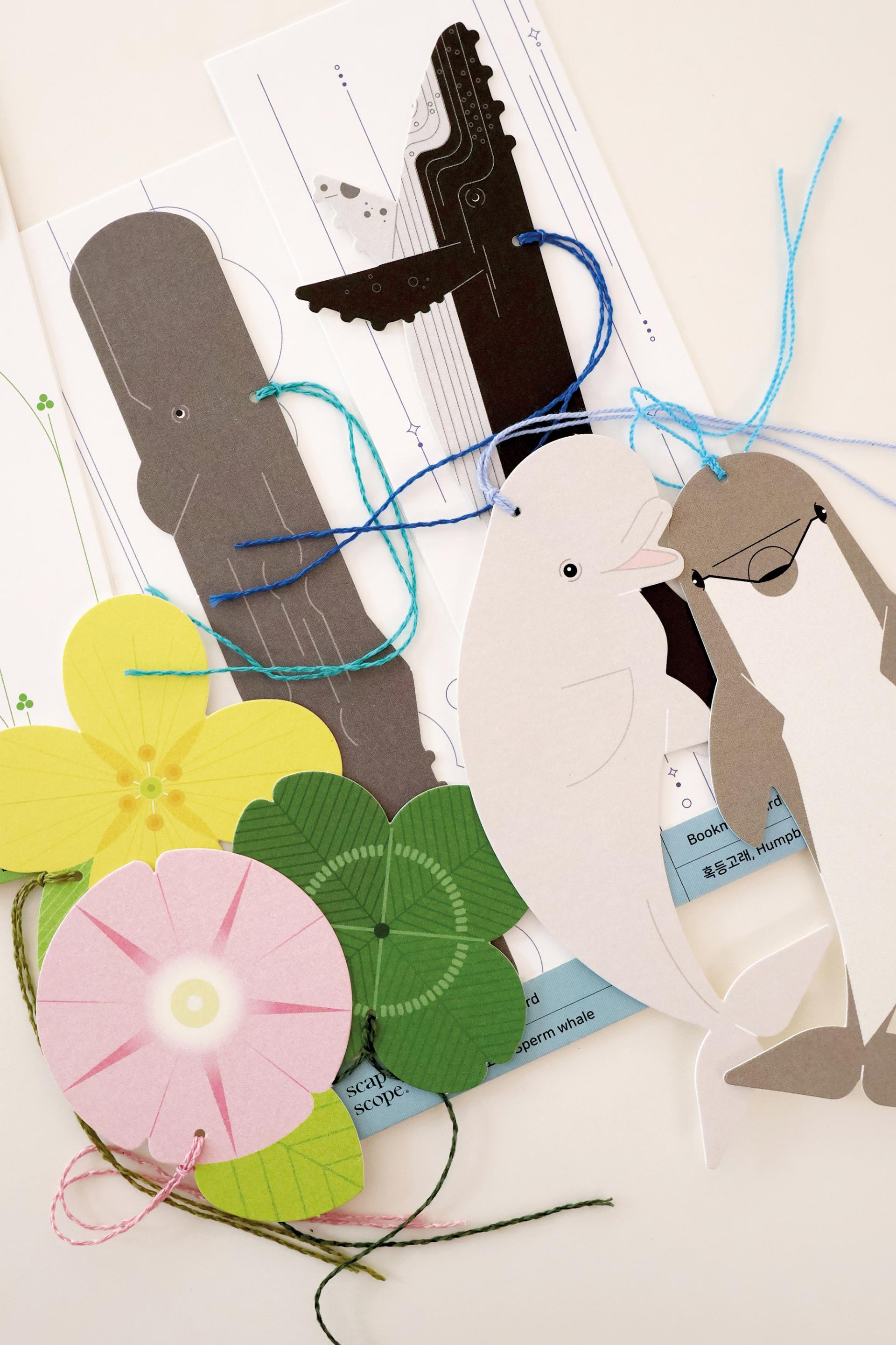 고래와 돌고래, 작은 풀들을 기본으로 물줄기와 풀줄기가 훌륭한 가름끈이 되었습니다. 분기공에서 뿜어오르는 시원한 물줄기와 싱그러운 풀줄기로 책을 가름해보세요. 독서의 시작과 끝에 작은 즐거움이 생겼습니다.